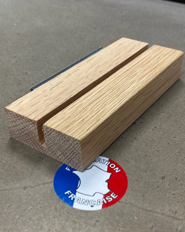 Support en chêne massif 🪵 Fabriqué en France 🇫🇷, artisanal et solidaire : l’allié parfait pour présenter avec élégance ! Ce support en chêne massif est idéal pour insérer une pancarte, un menu de restaurant ou servir de présentoir. Sa rainure centrale de 4 mm de largeur et 14 mm de profondeur permet de maintenir solidement vos supports tout en apportant une touche naturelle et élégante. 🌿 Éco-responsable : Conçu à partir de bois de chêne issu de forêts gérées durablement, ce support est l’incarnation d’un produit local et respectueux de l’environnement. 🛠 Fonctionnalité : Rainure centrée pour une insertion parfaite de menus, pancartes ou autres éléments de présentation. 🤝 Production solidaire : Fabriqué à Grenoble par des artisans en insertion professionnelle, ce support allie qualité et engagement social. Détails techniques: - Dimensions : 120 x 50 x 20 mm (dimensions personnalisables) - Rainure: 4 mm de largeur, 14 mm de profondeur - Production : 100 % française 🇫🇷, artisanale et solidaire