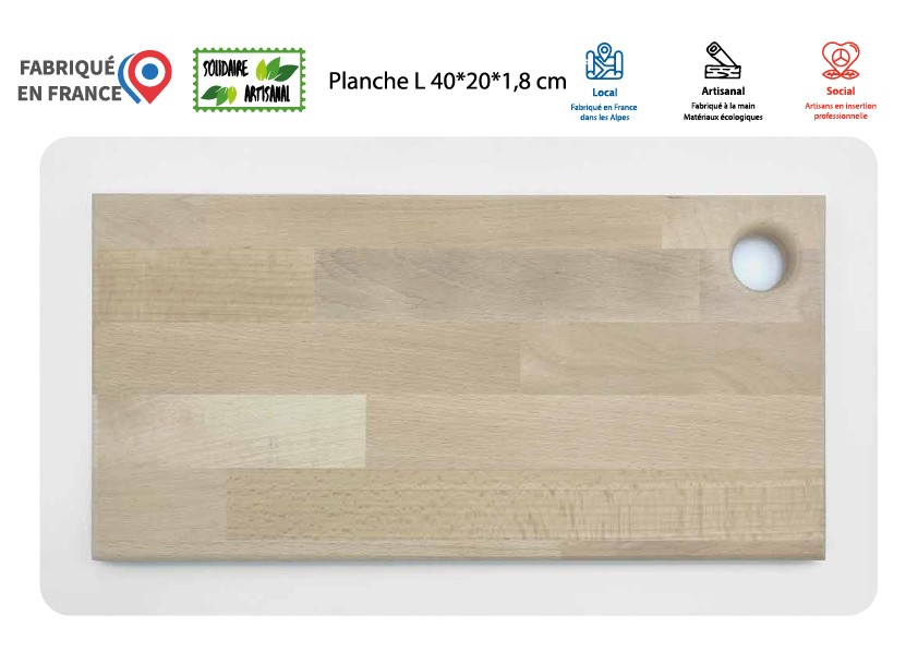 🌍 Production locale et solidaire : Chaque planche est produite à Grenoble par une entreprise d’insertion, garantissant un savoir-faire artisanal et un engagement social fort.
