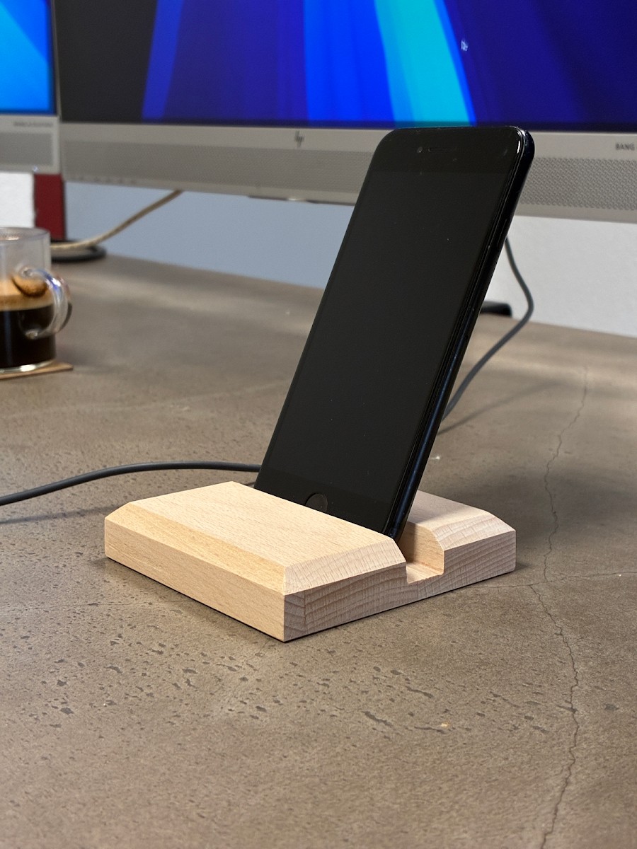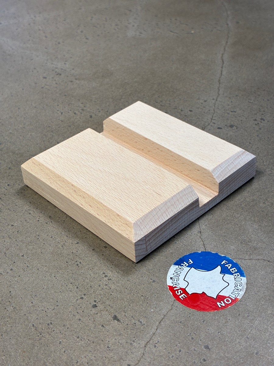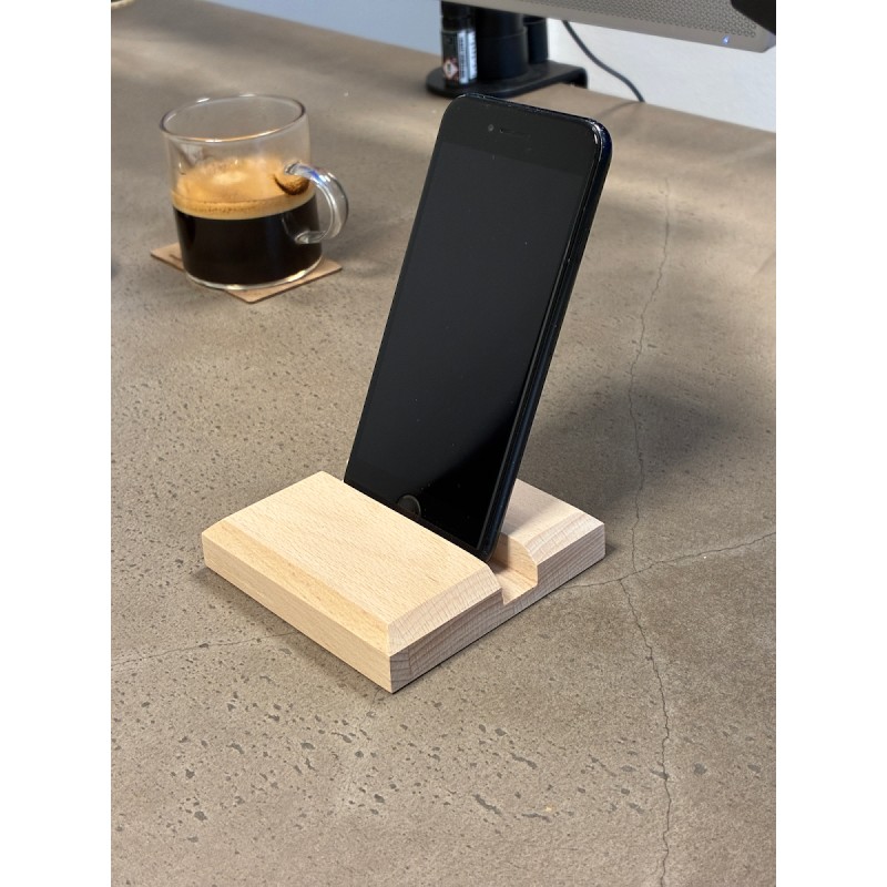 Ce support pour téléphone en hêtre massif est l'accessoire idéal pour garder votre appareil à portée de main avec style. Avec ses dimensions de 90 x 90 x 18 mm et une rainure de 14 mm de largeur et 12 mm de profondeur, il est conçu pour maintenir votre téléphone en toute sécurité.